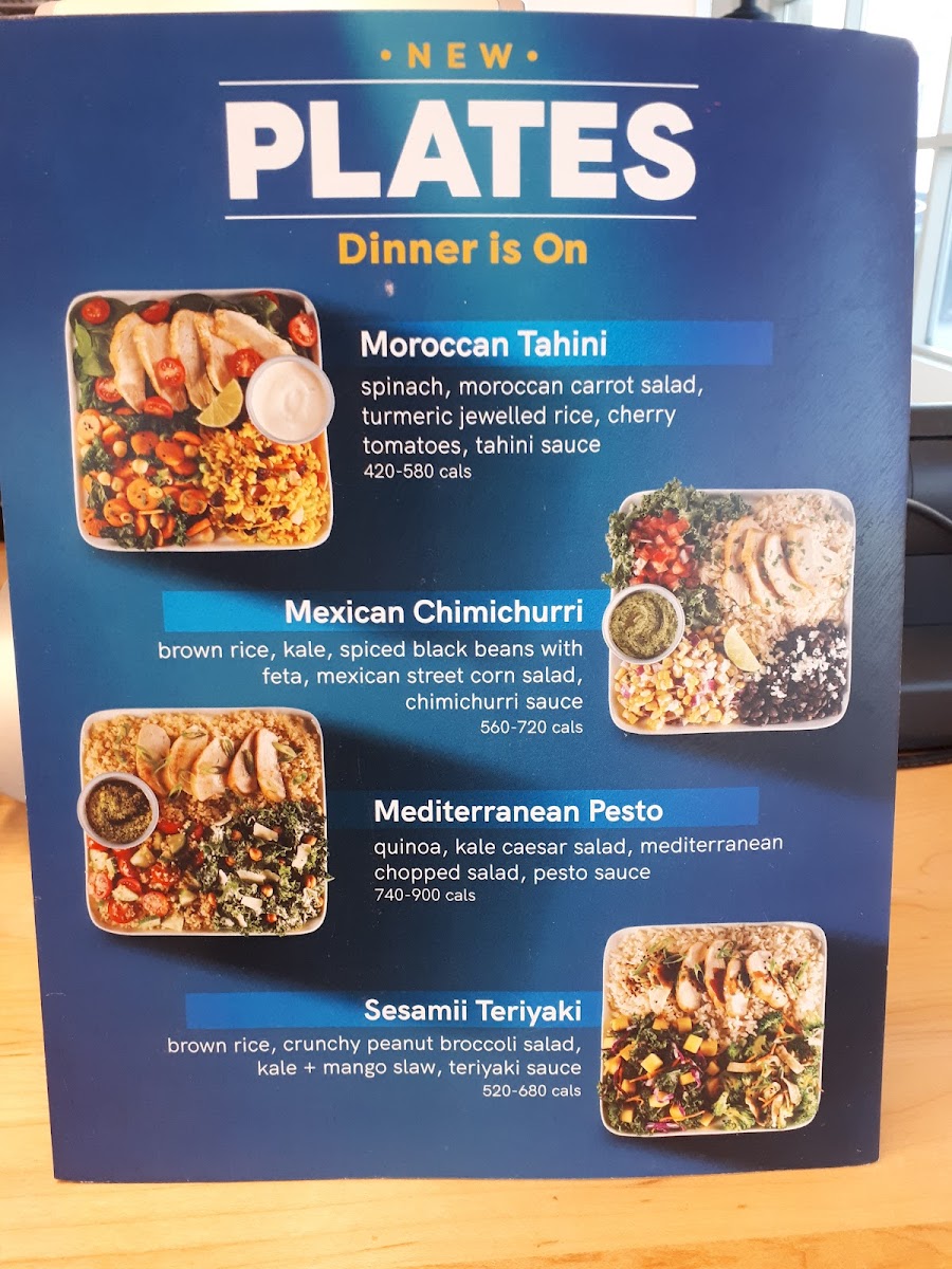 Tofu, brown rice, green onion, field greens, avocado, cucumber, mango, corn, pickled red onions, edamame, cilantro, wonton crisps, furikake, fried onions, and black and white sesame seeds, sriracha mayo, wasabi mayo, ponzu sauce, and teriyaki sauce.